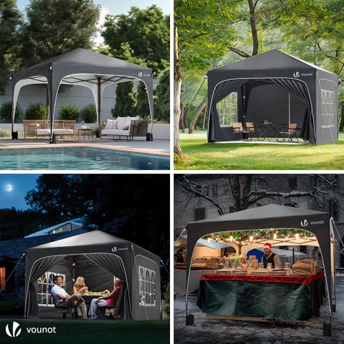 VOUNOT® Pavillon 3x3m mit 4 Seitenteilen & 4 Sandsäcke, Pop Up Faltpavillon, Wasserdicht, Faltbar Gartenzelt Partyzelt, inkl. Tasche, Grau