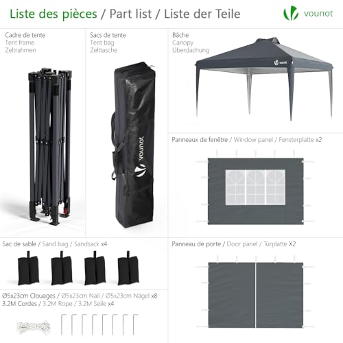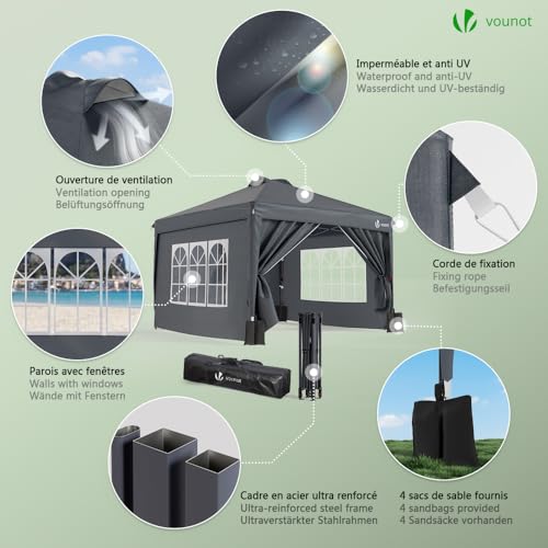 HEAVY-DUTY & DURABLE: Der strapazierfähiges Garten Pavillon verfügt über einen verstärkten Metallrahmen, der in drei Höhen verstellbar ist und wird mit 4 Sandsäcken, 8 Erdnägeln und 4 windfesten Seilen geliefert, um Ihr Faltzelt noch haltbarer und stabiler zu machen.