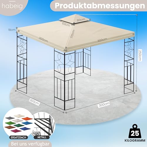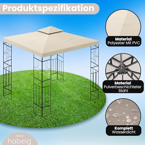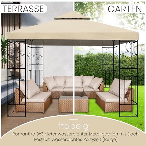 WASSERDICHTER Pavillon Romantika 3x3m Metall inkl. Dach Festzelt wasserfest Partyzelt (Beige)