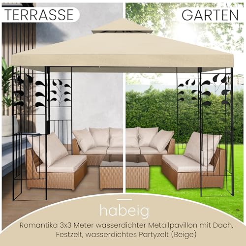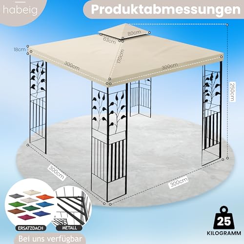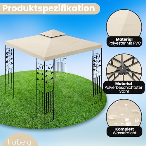 Pavillon Festzelt 300 x 300 cm mit wasserdichtem Dach aus 100% Polyester. Eine von unten versehene PVC-Schicht des Daches ermöglicht einen 100%igen Abschirmung vor jeglichem Wassereintritt und ist somit nicht hinwieder wasserabweisend, sondern ganzheitlich wasserdicht.