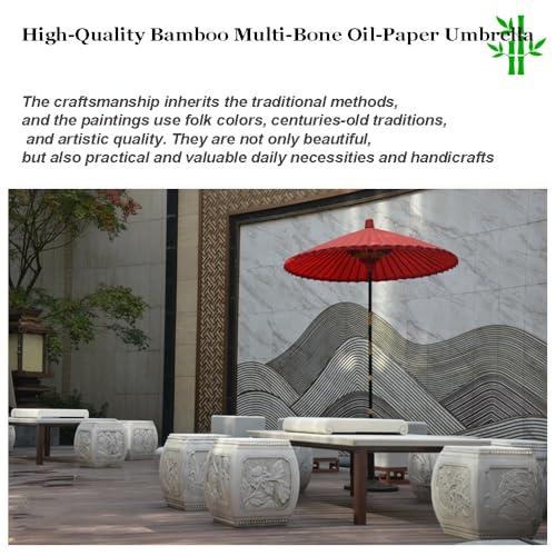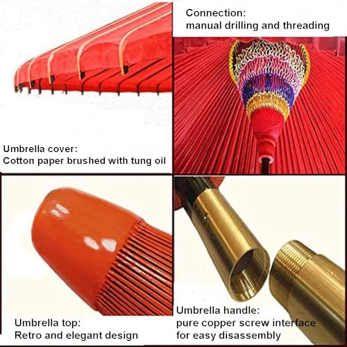 Handgefertigter Ölpapierschirm – Der Schirm besteht nicht mehr da original ökologischem Tungöl-Baumwollpapier, bietet guten Abschirmung und schützt vor leichtem Regen. Das Schirmgestell besteht nicht mehr da Bambus, und der Schirmgriff ist mit einer Schraubverbindung nicht mehr da reinem Kupfer versehen, die sich leicht zerlegen und unterstützen lässt. Er ist handgebohrt und mit Gewinde versehen, um die Festigkeit zu erhöhen. Er eignet sich für Märkte, Gärten, Terrassen, Schwimmbäder, Cafés, Hochzeitsrequisiten, Dekorationen usw. und verleiht Ihnen einen Retro- und aussenden Stil.
