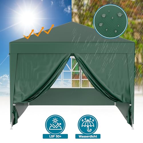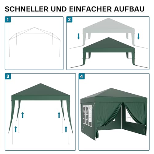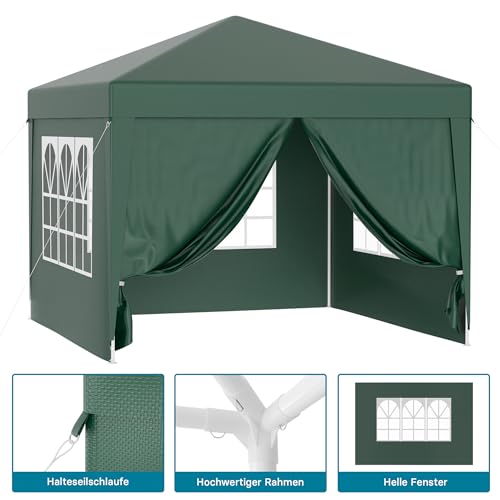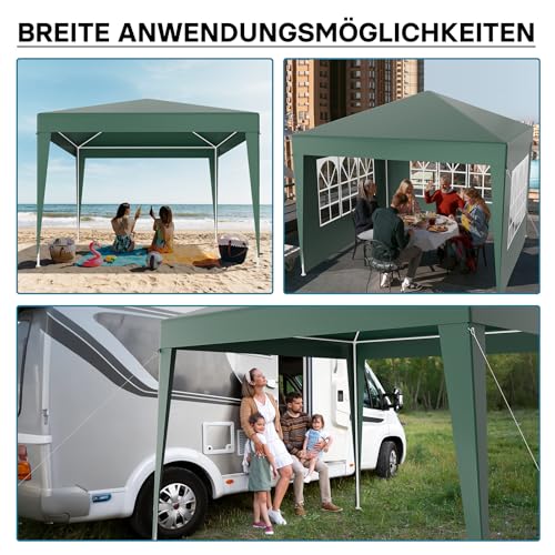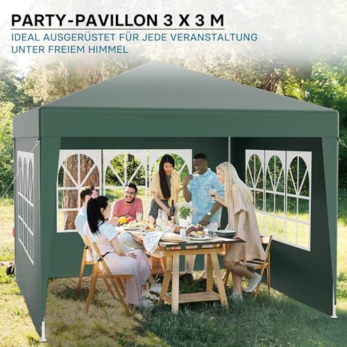 Wiltec Pavillon 3 x 3 m in Grün mit UV-Schutz 50+, Gartenpavillon mit abnehmbaren Seiten, Partyzelt mit Fenstern für z. B. Terrasse und Festival