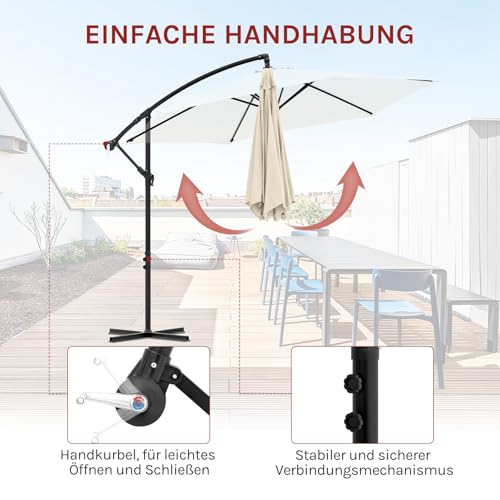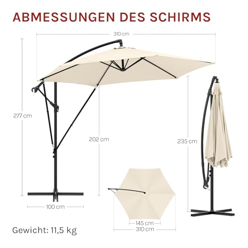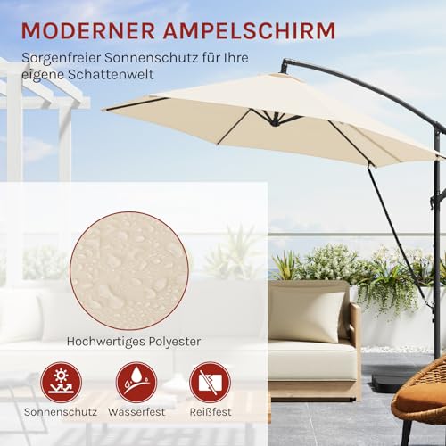 WOLTU Kurbelschirm, Hängender Gartenschirm φ310cm, UV-Schutz Strandschirm, Neigbar und Tragbar, mit Abdeckung, Belüfteter Offset-Schirm Rund für Balkon/Garten/Strand