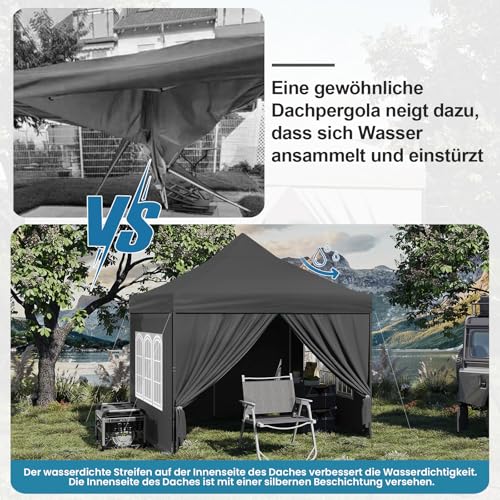 OPTIMIERTES DACH: Das Spitzdach macht den Pavillon mit Seitenwänden ästhetisch und praktisch. Es bietet nicht dennoch eine höhere Belastbarkeit und Windbeständigkeit, sondern lässt durch seine Affinität bekannt als das Regenwasser schnell abfließen, wodurch Wasseransammlungen und Undichtigkeiten vermieden werden