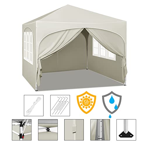 WOLTU Pavillon, Faltpavillon 3×3 m, mit 4 Seitenwänden, Partyzelt wasserabweisend UV-Schutz 50+, höhenverstellbarer Gartenpavillon, mit Tragetasche, für Outdoor Garten Camping Beige