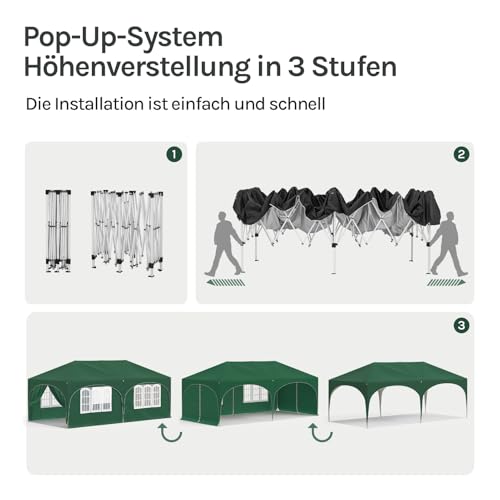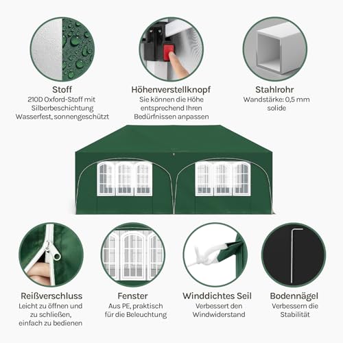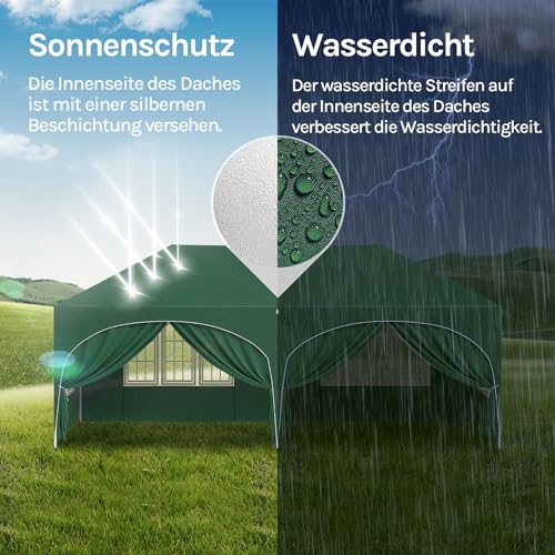 WOLTU Pavillon, Faltpavillon 3×6 m, mit 6 Seitenwänden, Partyzelt wasserabweisend UV-Schutz 50+, höhenverstellbarer Gartenpavillon, mit Tragetasche, für Outdoor Garten Camping Grün
