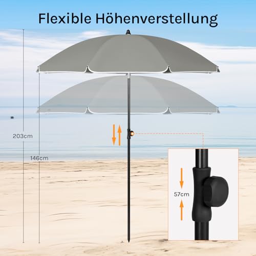 WOLTU Sonnenschirm φ 195 cm, Balkonschirm Strandschirm UV-beständig wasserdicht, höhenverstellbar, 45° knickbar, Sonnenschutz Balkon Terrasse Strand Garten, rund, Dunkelgrau