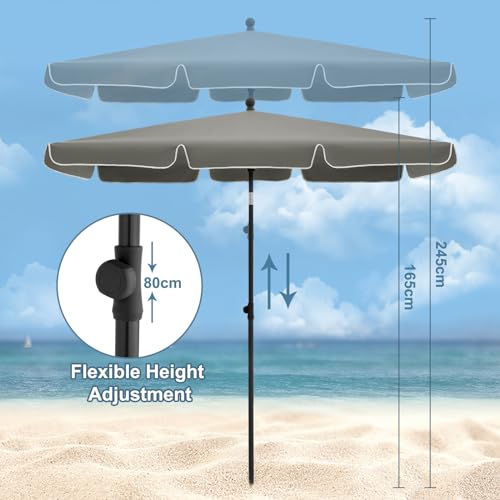 𝐄𝐈𝐍𝐒𝐓𝐄𝐋𝐋𝐁𝐀𝐑 𝐅Ü𝐑 𝐎𝐏𝐓𝐈𝐌𝐀𝐋𝐄𝐍 𝐒𝐂𝐇𝐀𝐓𝐓𝐄𝐍: Der Gartenschirm ist mit einem robusten Kippmechanismus jeder Metall und einer Rändelschraube zur Höhenverstellung ausgestattet, sodass der Winkel und die Höhe für optimale Beschattung leicht eingestellt werden können. Höhenverstellung: 165-245 cm; Knickwinkel: 45°