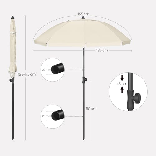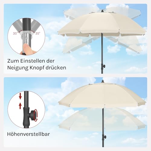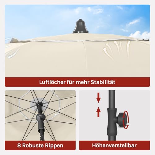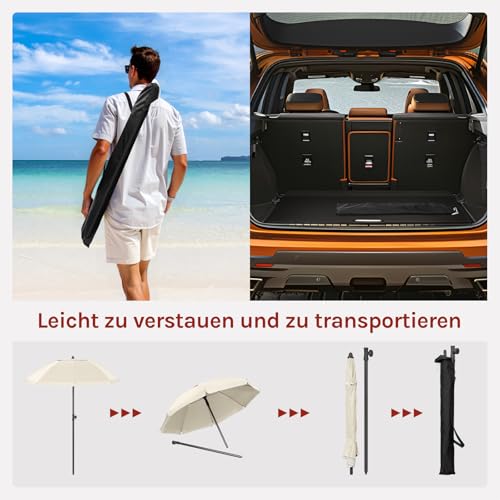 WOLTU Sonnenschirm Balkon φ135/155/175 cm, UV-Schutz Strandschirm UPF 50+, Höhenverstellbar und Knickbar, Tragbar mit Tragetasche, Belüfteter Rundschirm für Balkon/Garten/Strand, Beige/Dunkelgrau
