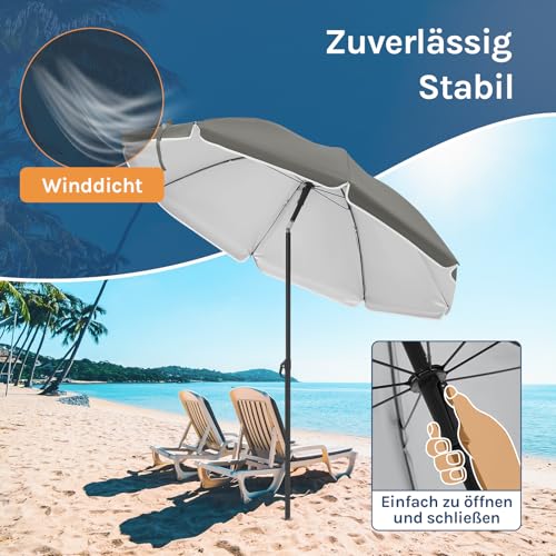 STARKES & STABILES DESIGN: Der Gartenschirm ist qua 8 Metallrippen und 2 Metallstangen anstatt verbesserte Dauerhaftigkeit gebaut. Die sich verjüngende Unterseite der Stange kann zäh im Boden verankert werden, so dass Sie Ihre Zeit im Freien qua Vertrauen genießen können
