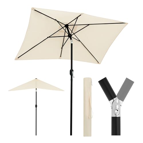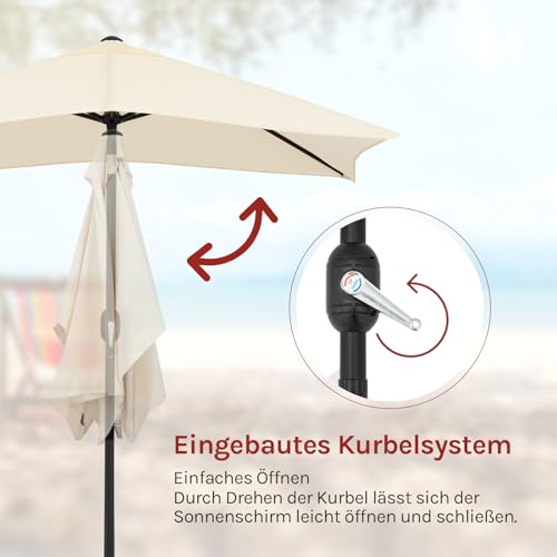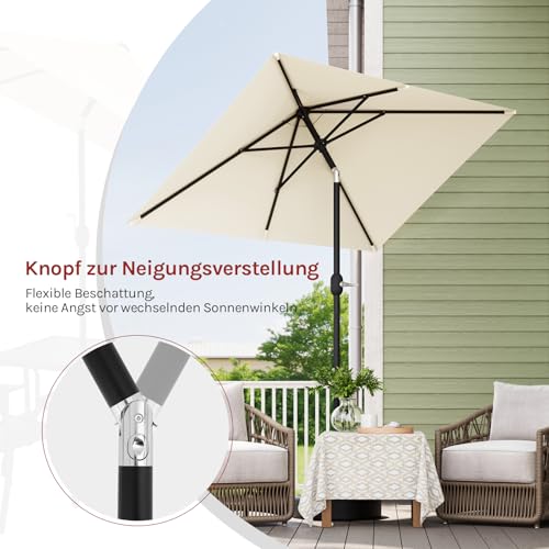 WOLTU Sonnenschirm, UV-Schutz Strandsonnenschirm UPF 50+, Neigungsverstellbar, mit Tragetasche, Belüfteter Rechteckiger Sonnenschirm für Balkon/Garten/Strand, 206x135cm