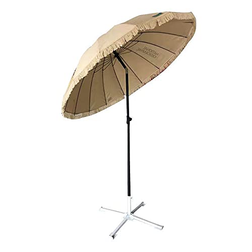 【 Robuster und stabiler Rahmen 】 Dieser Strandschirm besteht aus einer Metallstange, Abseitsposition starke 8 Stützrippen verhindern, dass der Schirm von innen nach außen kippt, widerstehen dem Wind besser und halten länger.