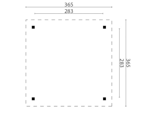 Der Pavillon hat eine Breite von 356 cm, eine Höhe von 250,8 cm und eine Tiefe von 356 cm. Orientiere dich für die Erstellung des Fundaments am Grundriss bzw. an der mitgelieferten Montageanleitung.