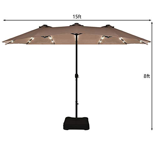 Dieser 9-Fuß-LED-Sonnenschirm bietet tagsüber eine schöne und kühle Oase für den Terrassentisch, und die Lichter können Ihrem gemütlichen Abend unbegrenzt Klima und Glanz verleihen.