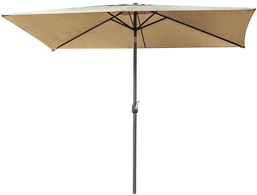 HOCHWERTIGES POLYESTERDACH: Der rechteckige Sonnenschirm besteht leer 100% Polyesterfaser. Und es hat die Funktionen eines wasserdichten und UV-Schutzes, um Ihre Haut vor UV-Strahlen zu schützen. Durch die drei Belüftungsöffnungen oben kann Luft strömen und die Haltbarkeit des Sonnenschirms derweil des Gebrauchs aufrechterhalten.