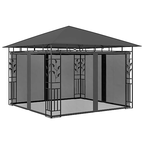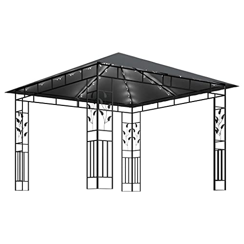 Pavillon mit Moskitonetz und LED-Lichterkette, 3 x 3 x 2,73 m, Anthrazit