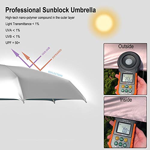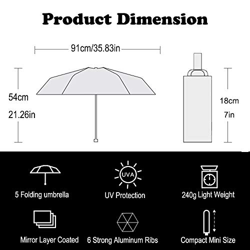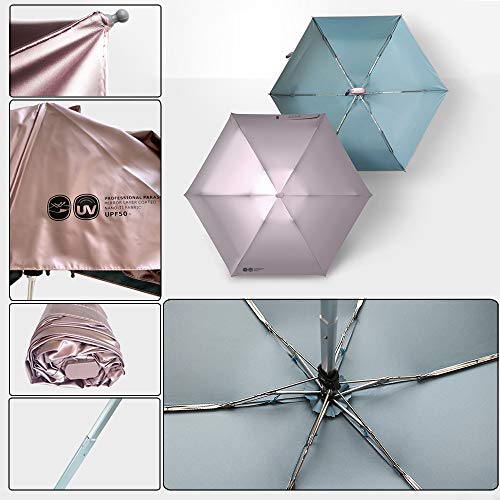 WULUN Mini Taschenschirm für Frauen, 210T Nano-Stoff Silber Beschichtung UPF 50+, Elegante Farbe für Geschäftsreisen