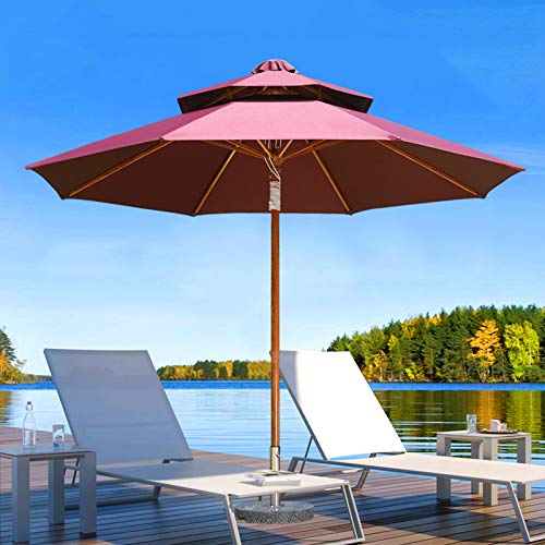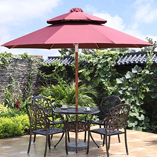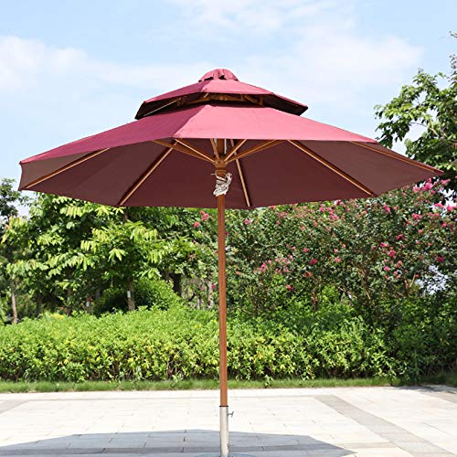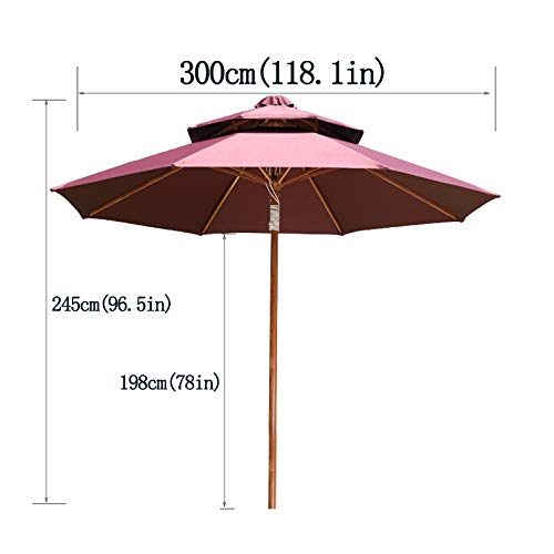 XIAOYUE 10ft Runder Doppel Sonnenschirm, FüR Patio-Hinterhof-Strand-Markt Im Freien, Holz Mast