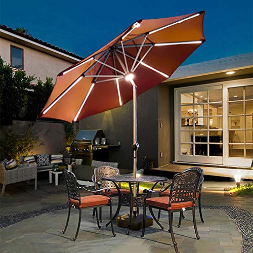 Energiesparender Solar-LED-Regenschirm: LED-Scheinwerfer + Lichtleisten-Design, größere Fläche beleuchten, acht LED-Röhren, Ein-Tasten-Schalter für LED-Leuchten