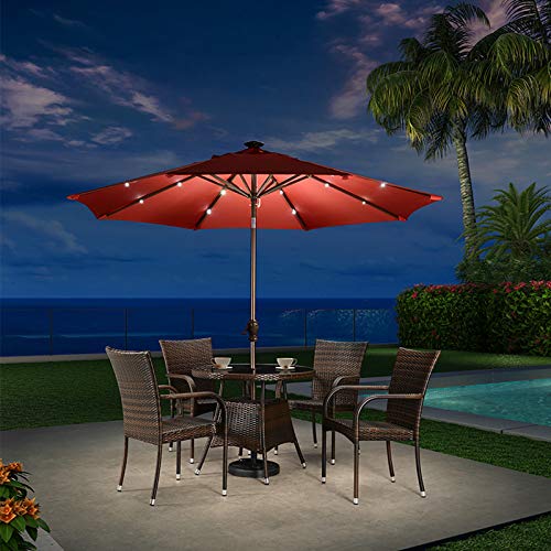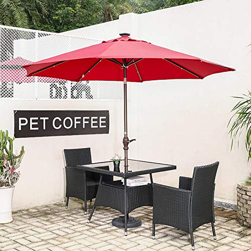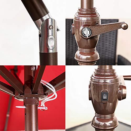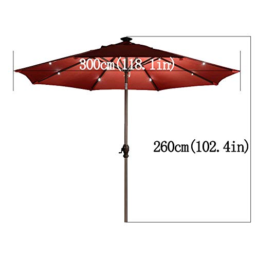 XIAOYUE 9ft Solar-LED-Lichtern Sonnenschirm, Mit Neigbar Kurbel, Verzinkter Stahl Mast – Rot