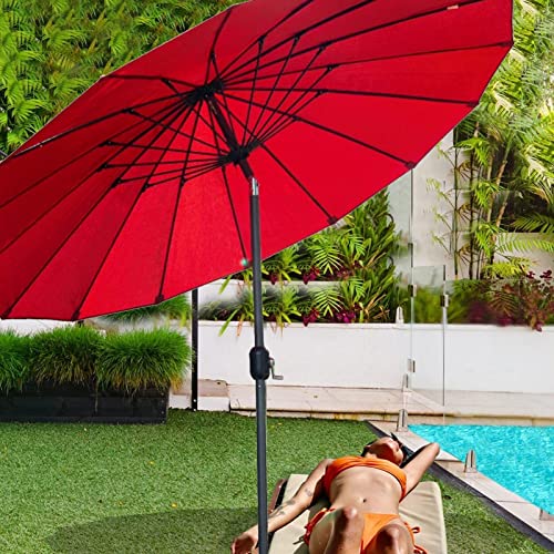 XIAOYUE Sonnenschirm Shanghai Ø 250 cm Rund mit Kippsystem, Gartenschirm aus Aluminium/Polyester mit Kurbel, Wasserabweisend, Rot