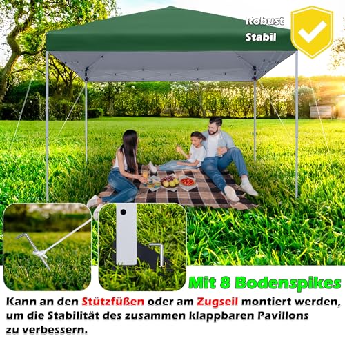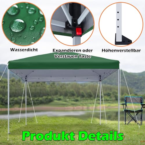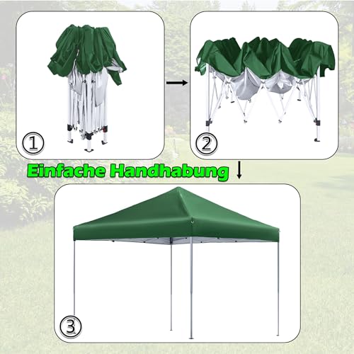 Pavillion aus Hochwertige Materialien: Der faltbare Pavillon ist mit einem Oberstoff aus hochwertigem Oxford-Gewebe aus 100 % Polyester ausgestattet, das wasser-, sonnen- und UV-beständig ist. Die Rahmensäulen sind aus hochwertigem Stahl gefertigt, der sehr robust und langlebig ist, und die große Fläche von 2.5×2.5 m / 3×3 m ist so konzipiert, dass Sie Ihre Zeit im Freien genießen können.