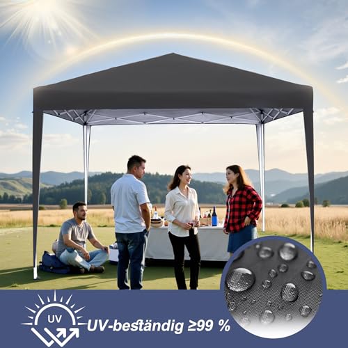Optimale Belüftung und Abschirmung: Das innovative Design unseres Faltzelts sorgt für eine perfekte Luftzirkulation, nachdem Sie gleichzeitig vor Sonne und Regen geschützt sind. Der durchdachte Aufbau ermöglicht eine frische Belüftung, die Ihnen und Ihren Gästen stets angenehmen Komfort bietet – egal ob bei der Grillparty, beim Camping oder einer spontanen Feier im Garten. Genießen Sie die frische Luft ohne Sorgen