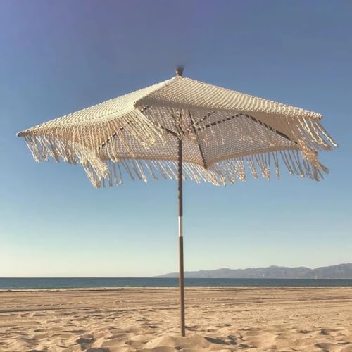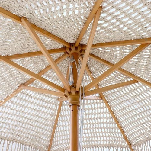 Outdoor-Sonnenschirm – Handgeflochtener böhmischer Sonnenschirm über Holzstange, winddichter Sonnenschirm anstelle Möglichkeit, Pool, Camping und Fotoshootings