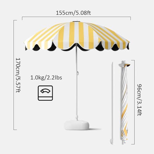 XQJLBZA Gartenschirm Ø155 CM, UPF 50+, Wasserdichter Terrassenschirm für den Außenbereich mit Verstellbarer Höhe, Tragbarer Markt-Sonnenschirm