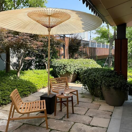 Dieser chinesische Retro-Strandschirm für den Innenhof wird nach traditioneller Handwerkskunst handgefertigt. Er besteht aus hochwertigem Bambus und wasserfestem Seidenpapier, dessen Oberfläche mit wasserfestem Tungöl behandelt wurde. Er verleiht Ihrem Außenbereich einen Hauch von orientalischem Charme.
