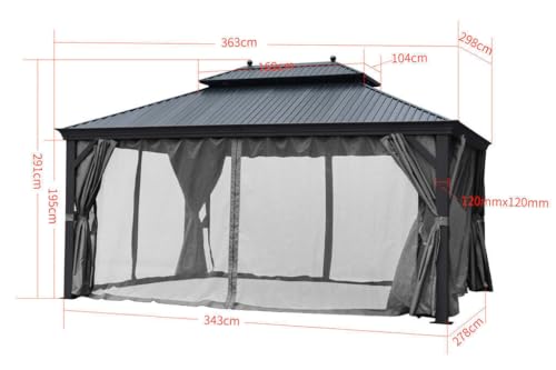 Pavillon inkl. Überdachung via 6 mm Doppelstegplatten Größe ca. 3×3.65 m 4 Versteifen 12 x 12 cm Innovative feste Überdachung aufgebraucht Leichtmetall in anthrazit Hochwertiges Aluminiumgestell in anthrazit via Kunststoffbeschichtung verstärkt via Metallbestandteilen Enorm elegante Ausbreitung des Lichts, Elegante, lineare Struktur, enorm strapazierfähig Selbstaufbau Moskitonetz sowie Seitenvorhänge an allen 4 Seiten sind bereits im Aktionspreis enthalten.