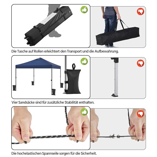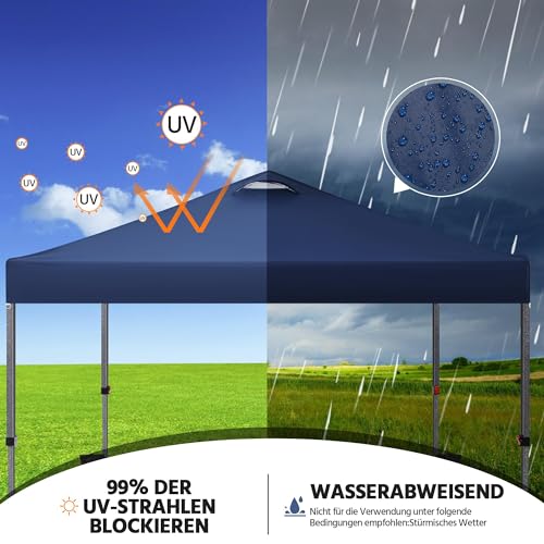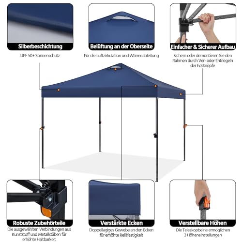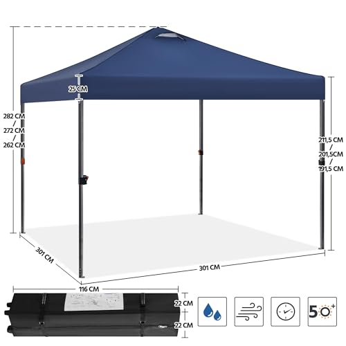 Yaheetech 3x3m Faltpavillon Pavillon Wasserdicht Stabil, Höhenverstellbar Pop Up Faltzelt inkl.Tasche & 4 Sandsäcke, UV-Schutz 50+ Campingpavillon Partyzelt für Garten Camping, Navy Blau
