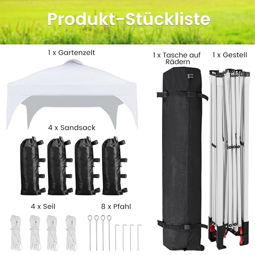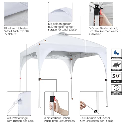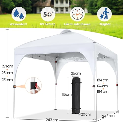 Einstellbare Höhe: Die Höhe des Pavillons ist von 251 cm bis zum 271 cm in 3 verschiedenen Positionen einstellbar.