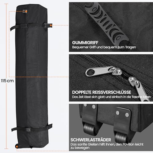Tragetasche mittels Rädern: Die schwarze Tragetasche alle 300D-Oxfordgewebe ist mittels 4 adaptiv-drehbaren Rädern ausgestattet. Darob können Sie den Pavillon zum Camping putzen.