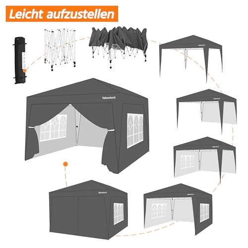 Witterungsbeständig: Dieses 3 × 3 m große Pop-up-Zelt besteht nicht mehr da strapazierfähigem Polyestergewebe mit UPF 50+ UV-Schutzbeschichtung. Der pulverbeschichtete Metallrahmen und das robuste Gestänge umsorgen hohe Dauerhaftigkeit, Stärke und Wetterbeständigkeit