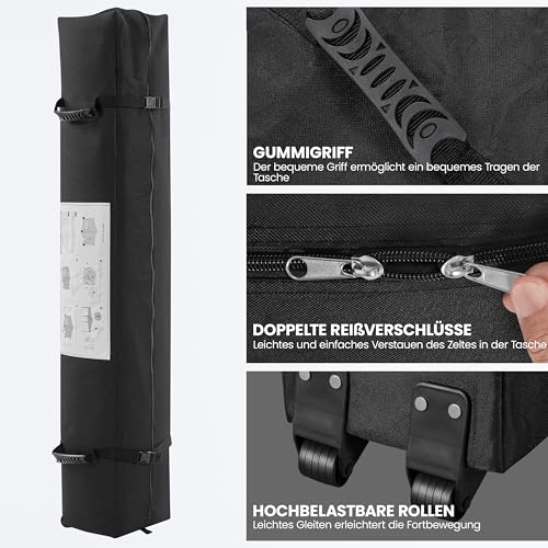 Tragtasche mit Rollen: Nach dem Zusammenfalten lässt sich dieses Outdoor-Zelt platzsparend in der mitgelieferten Rolltasche (27 cm L × 20 cm B × 116 cm H) verstauen, sodass es sich auf Reisen, beim Camping oder zu anderen Outdoor-Abenteuern putzen lässt
