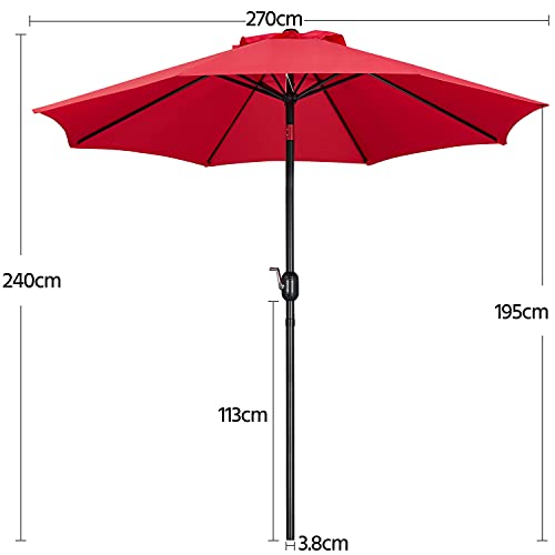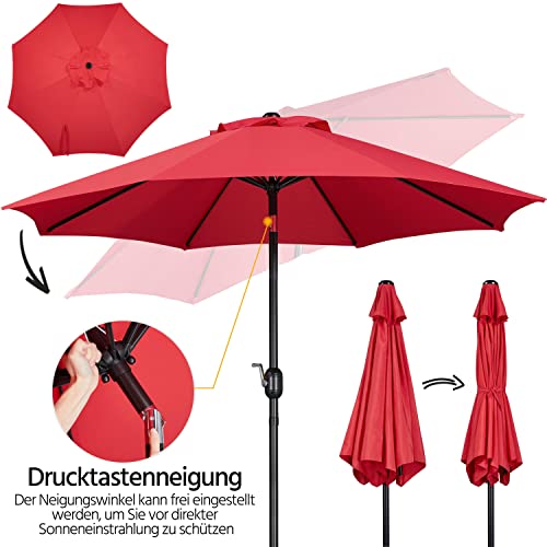 Yaheetech Sonnenschirm Balkon Rund Terrassenschirm 270 cm Gartenschirm Knickbar Kurbelschirm mit Kurbelrichtung UV Schutz UPF 50+, Rot