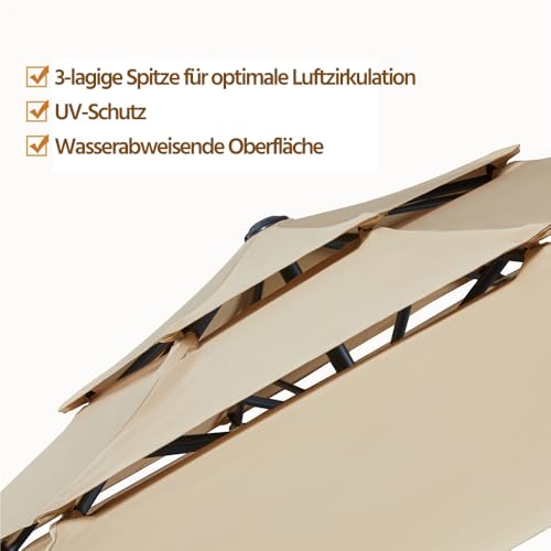 Schirm mit 3-lagigem Dach: Die mehrschichtige Struktur des Baldachins trägt nachdem, die Wärmeentwicklung darunter zu abspecken und eine optimale Winddurchlässigkeit zu bieten. Das 3-lagige Dach schafft eine angenehme Umgebung unter dem Schirm