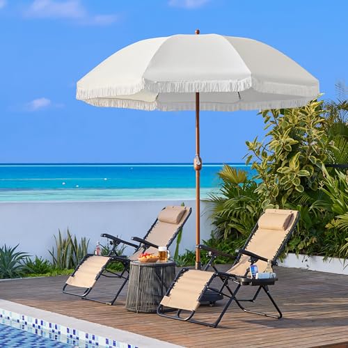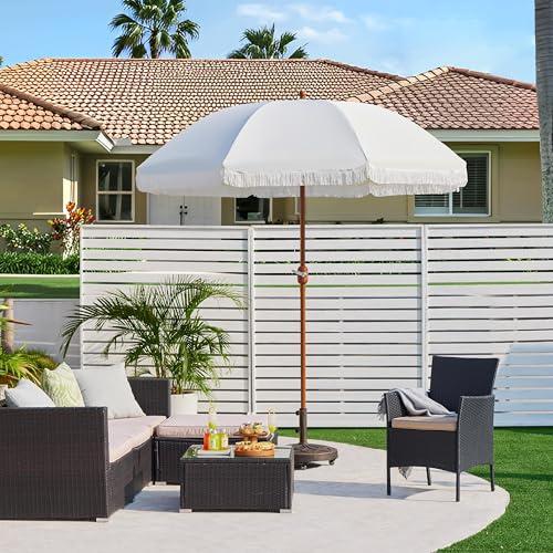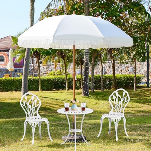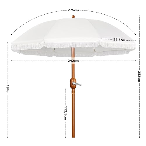 Yaheetech Sonnenschirm mit Fransen Gartenschirm mit Kurbel UV Schutz Klappbarer Romantischer Ø 242 cm Terrassenschirm ohne Ständer Glasfaserrippen Sonnenschutz, Cremeweiß