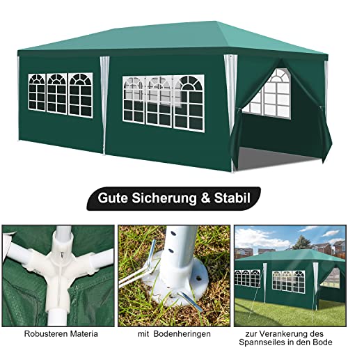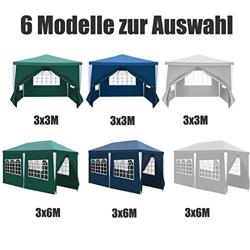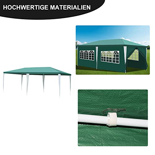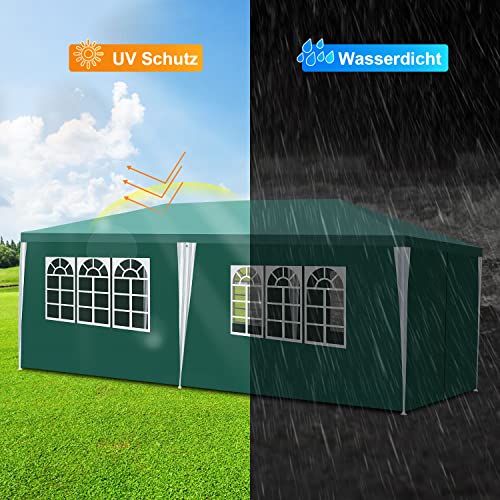Yakimz pavillon 3x6m Wasserdicht Gartenpavillon Stabil Winterfest mit 6 Seitenteilen und Fenstern, Pavillon Sonnenschutz Partyzelt Festzelt für Party, Marktstand, Festival, Grün