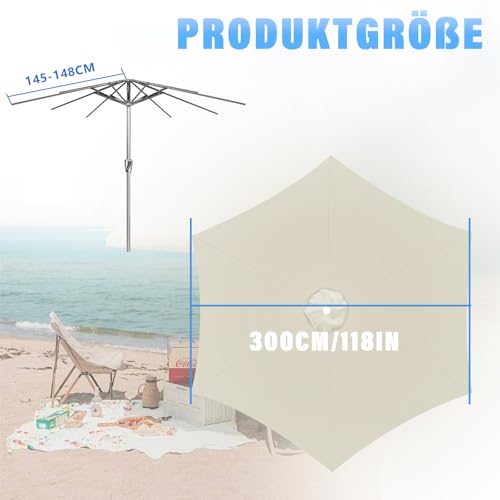 YedZen 3m Sonnenschirm Ersatzbezug 6 Streben, 300cm Cremefarben Überdachung Ersatzabdeckung mit 6 Rippen, UV-Schutz Wasserdicht Schirmbezug für Outdoor-Regenschirm Sonnenschutz
