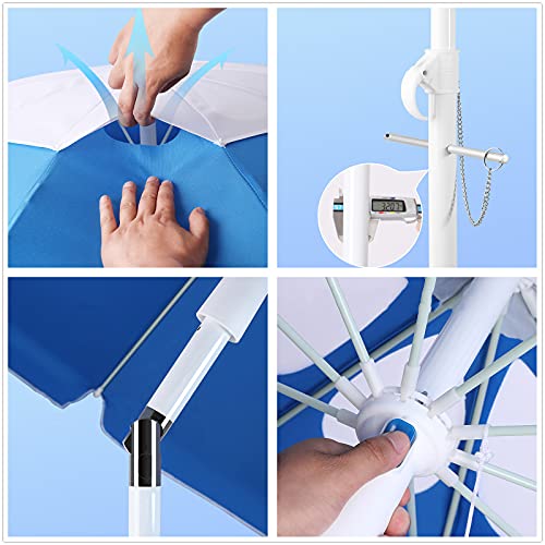 Belüftungsöffnungen: Die Belüftungsöffnungen an der Oberseite der Haube lassen die Luft darunter freier zirkulieren. Dies hilft, die Temperatur unter dem Sonnenschirm so anzupassen, dass Sie sich nicht stickig fühlen.