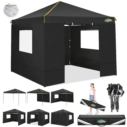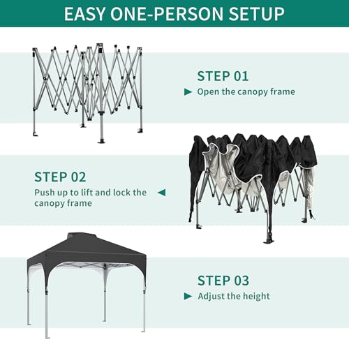 YITAHOME 3X3Meter wasserdichte Pavillon Faltpavillon, Faltbarer Stabil Pop up Pavillon Outdoor Anti-UV Gartenpavillon Höhenverstellbarfür Alle Jahreszeiten Für Märkte Pool Festival, Schwarz