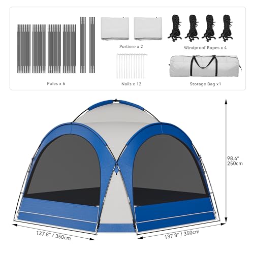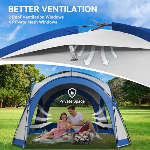 Große Kapazität: Nach dem Aufbau misst der Pavillon 3,5L x 3,5B x 2,3H Meter und bietet eine geräumige Kuppelform, die ideal für Zusammenkünfte ohne beengtes Gefühlsausbruch ist. Erwachsene können sich frei bewegen und so das Sozialerlebnis ummünzen. Der Pavillon verfügt über interne Haken oben für das Aufhängen von Lichtern, Bändern und Laternen (Hinweis: Umschiffen Sie offenes Feuer jeglicher Sicherheitsgründen).