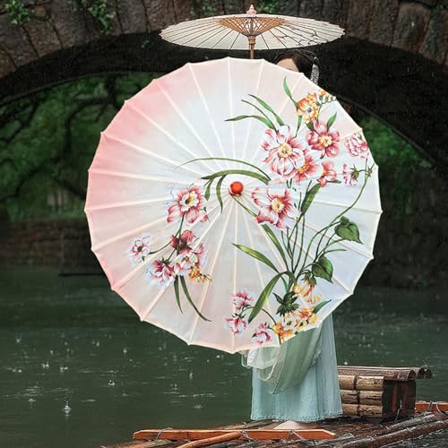 YKJGRTF Sonnenschirm aus Seide, Sonnenschirm aus Spitze, Vintage, chinesischer Seidenschirm, Sonnenschirm aus Seidentuch, chinesischer Schirm aus geöltem Papier, uralt