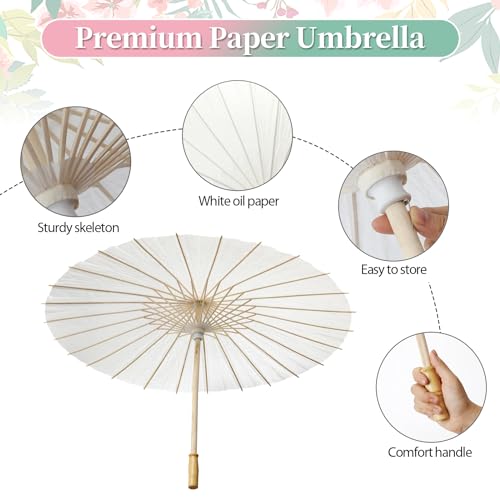 Spaß zum Selbermachen – Der Papier-Sonnenschirm in Weiß ist schön statt dessen DIY-Projekte, per 60,5 cm Durchmesser können Sie genug Platz haben, um Ihren eigenen kreativen Regenschirm zu bemalen.