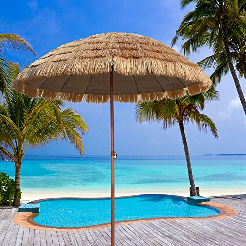 YQJY Strandschirm Sonnenschirm Hawaii Höhenverstellbarer Gartenschirm Kippfunktion Stroh Balkonschirm Tischschirm Für Balkon Oder Terrasse Sonnenschutz Uv Schutz Φ2.6m/1.92m