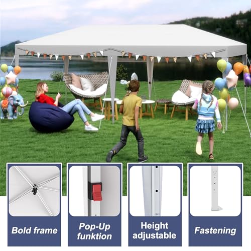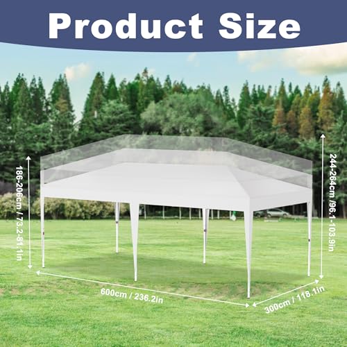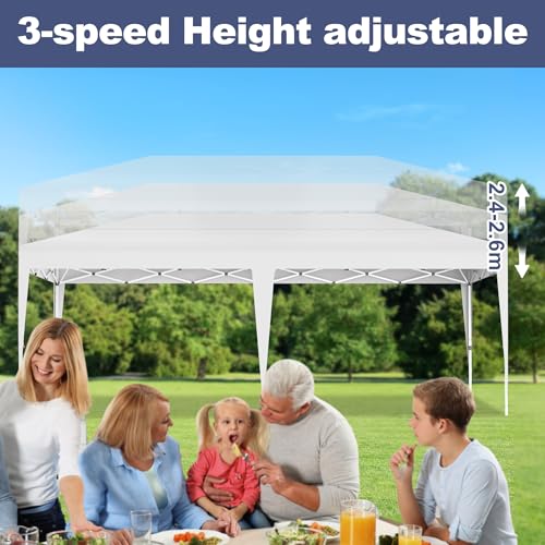 YRHome 3x6m Pavillon Höhenverstellbar Wasserdicht Stabil Winterfest Faltpavillon Pop-Up Partyzelt Gartenzelt Gartenpavillon UV Schutz 210D Oxford-Gewebe inkl. Tasche (Weiß ohne Seitenwände)