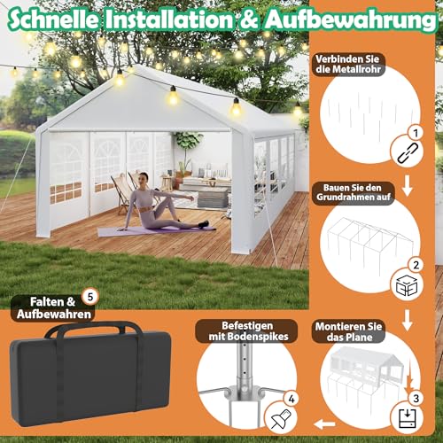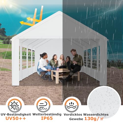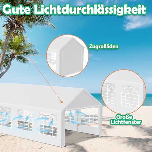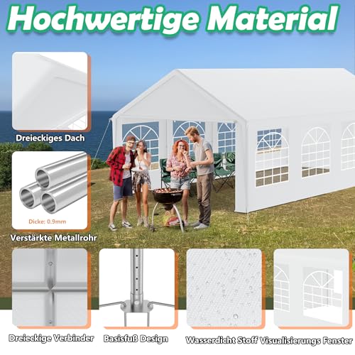 YRHome Premium 4 x 8 m Partyzelt Pavillon mit Seitenteilen Wasserdicht Stabil Winterfest Fenster in Seitenwänden Gartenzelt Großzelt Kompaktzelt Unterstand PE-Dach für Hochzeit Gartenfest Weiß
