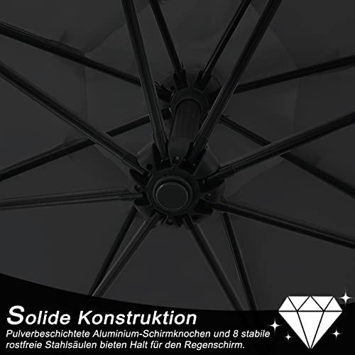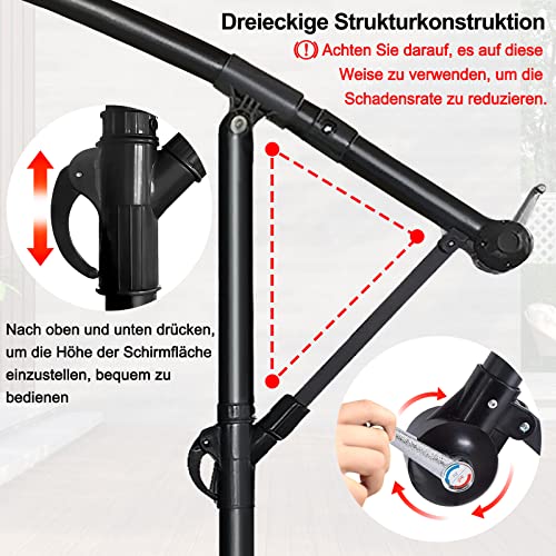 🌷【Adaptiv Einstellbar】Neigungswinkel Stufenlos Verstellbar- Freischwebender Schirm mit 8 Streben inkl. Handkurbel für leichtes Aufspannen Stufenlos in verschiedene Neigungswinkel einstellbar, bietet kontinuierliche Umschlag alias außerhalb des Tages